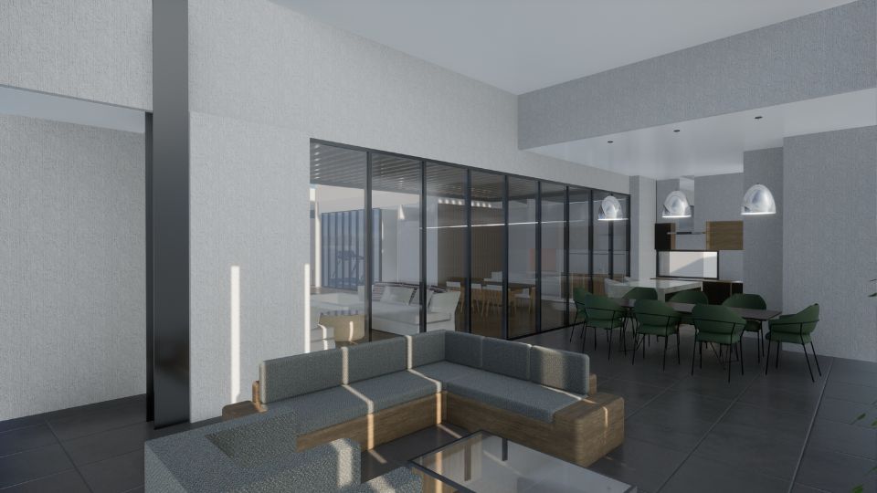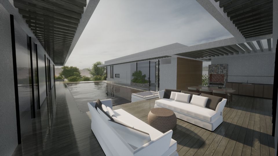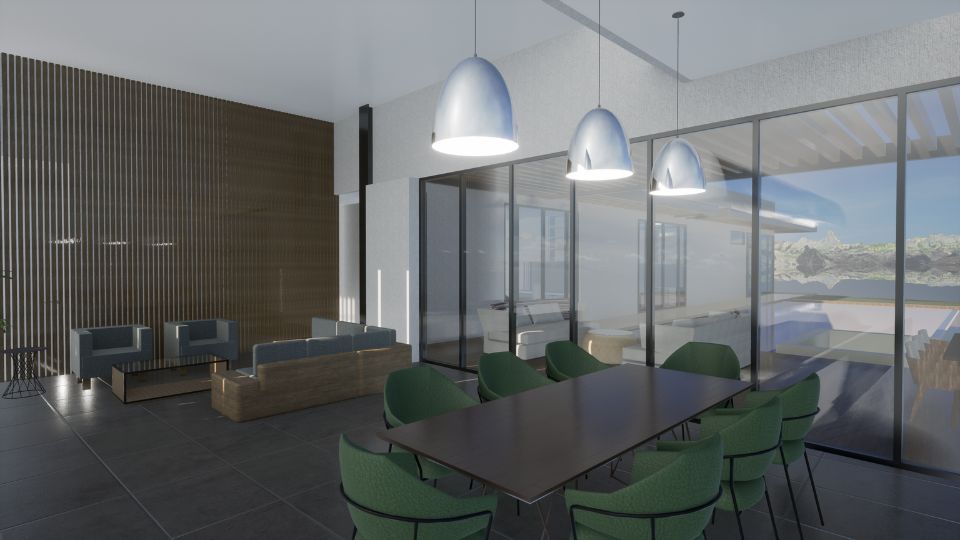 La vivienda campestre Alejandría es un proyecto que busca crear un hábitat que favorezca la convivencia familiar, integrando la zona privada y la zona social en torno a un espacio central que funciona como el corazón de la casa. El diseño se adapta a las necesidades específicas de esta familia, así como a las condiciones topográficas y naturales del lugar, generando espacios que se conectan visual y físicamente con el entorno.